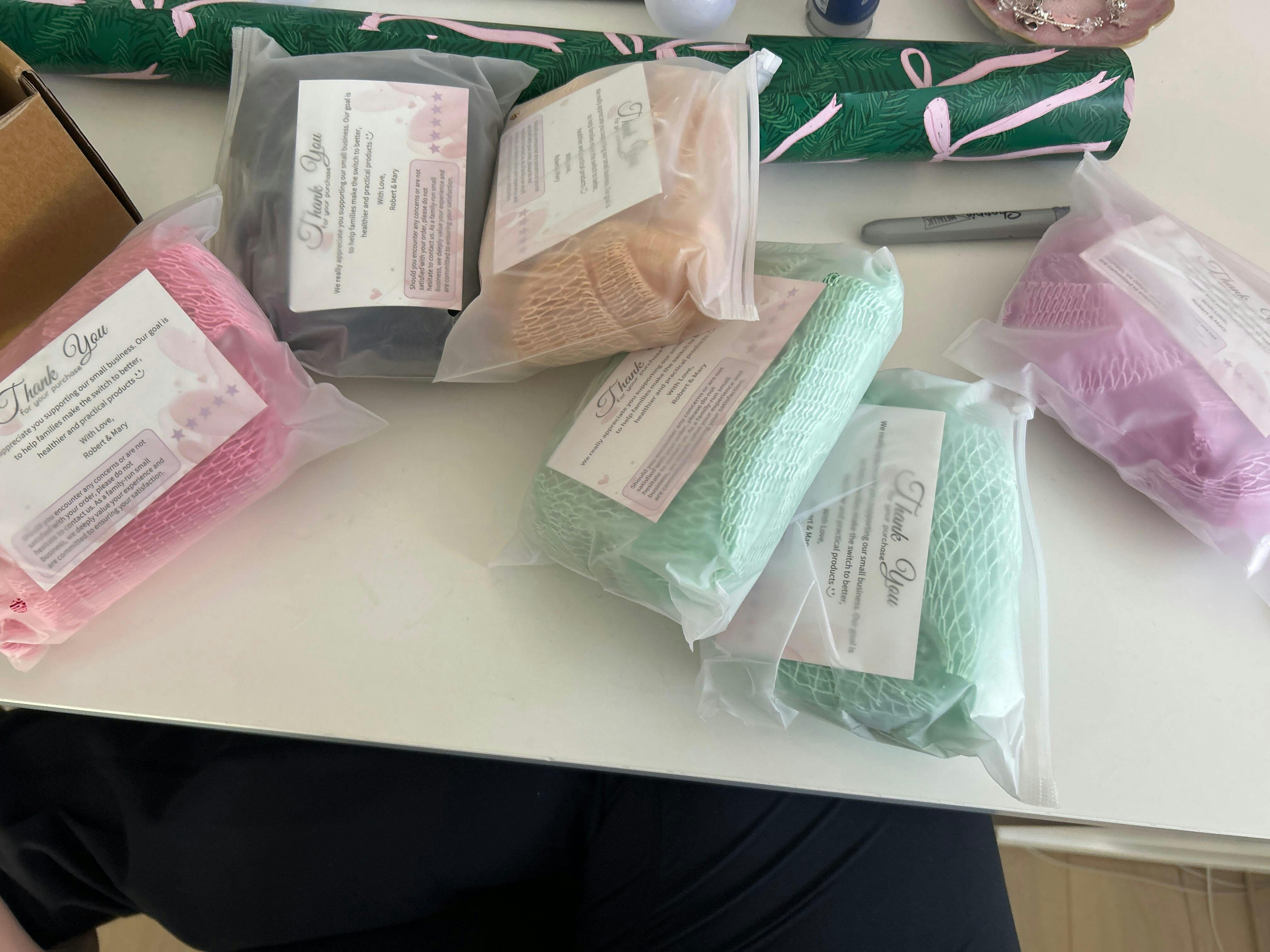 Highly recommend this product!! I brought 5 packs of 2 sponges and they were super quick to deliver. The colours are so beautiful and the quality is amazing. I am so glad they are real African net sponges instead of those cheep plastic stuff